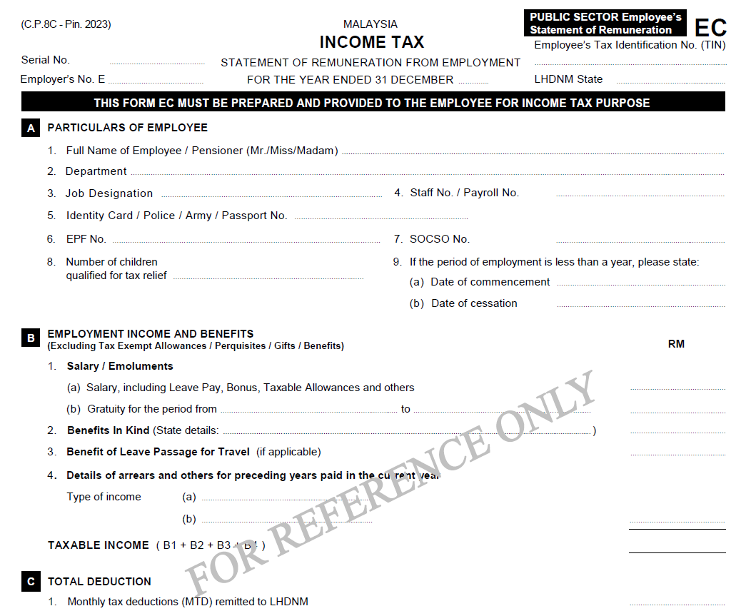 | EA form (Malaysia) | Issued to employees summarising remuneration | By 28 February |