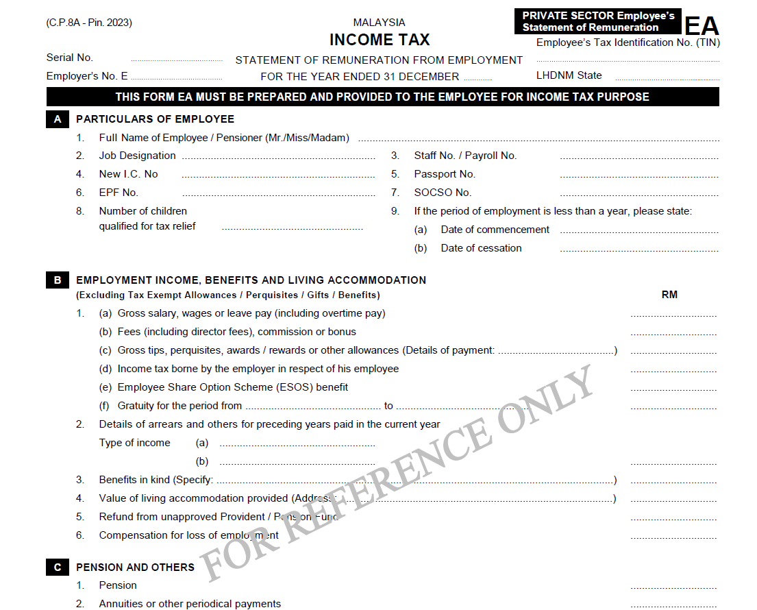 While the EA form Malaysia is given to employees, CP8D and Form E are submitted to the Inland Revenue Board of Malaysia (LHDN) by employers.