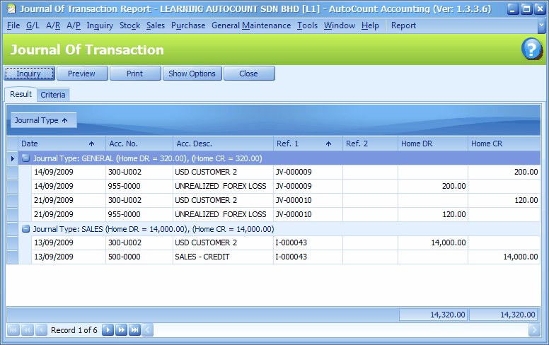 Go to G/L > Journal Of Transaction Define filter options, (filter the date till 14/09/2009) Click on Inquiry,